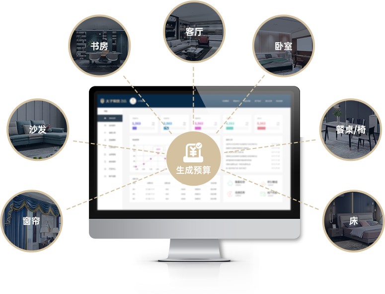 支持从全屋定制、家具沙发、软装配饰的全维度选配 并按采选产品即时生成预算