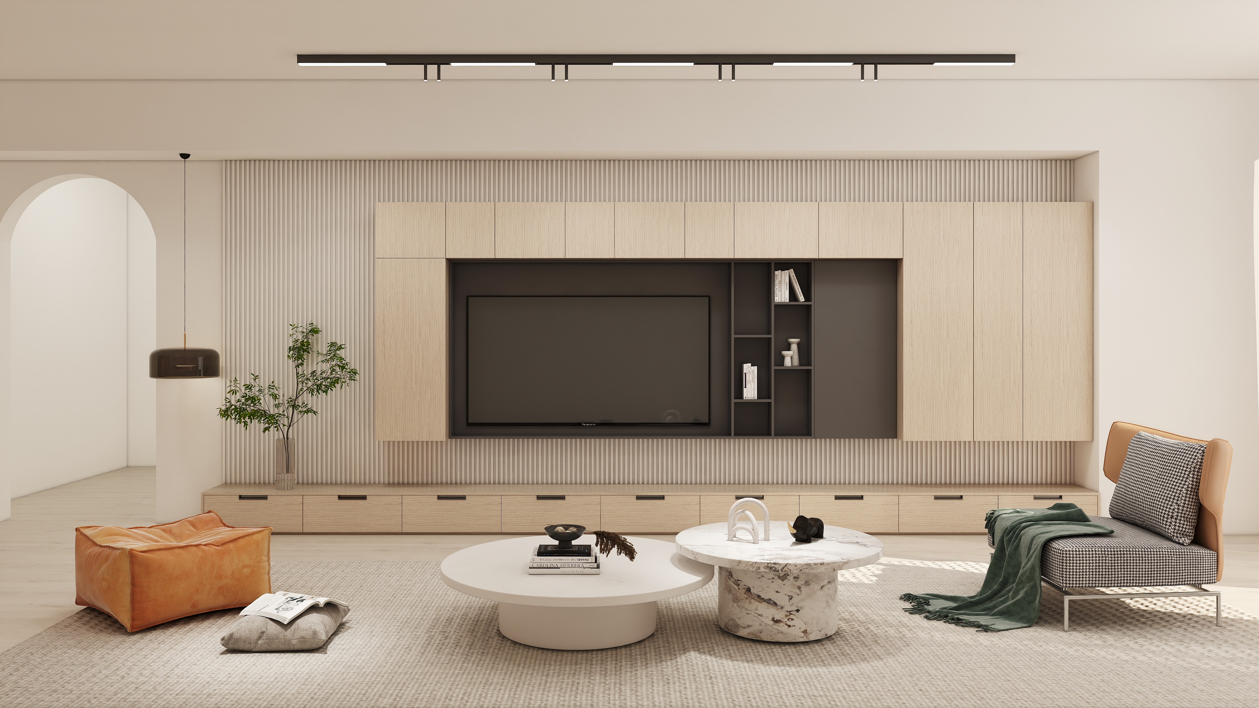 不要敷衍你的房子,因为里面装满你的生活。设计师根据屋主的需求,考虑到客厅面积有限,在设计围坐式沙发的同时,将阳台纳入了客厅空间,增加采光面,使得客厅更加宽敞明亮。