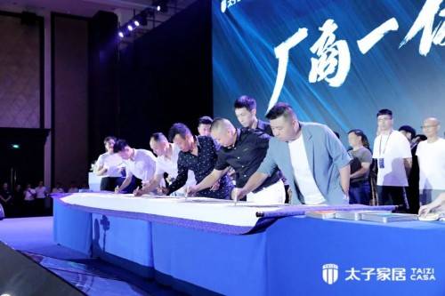 太子家居董事长李良辉先生携公司高管团队莅临现场与来自全国各地近千位优秀经销商齐聚一堂,分享行业前沿趋势,启动厂商一体 百强计划仪式,共谋发展新未来。