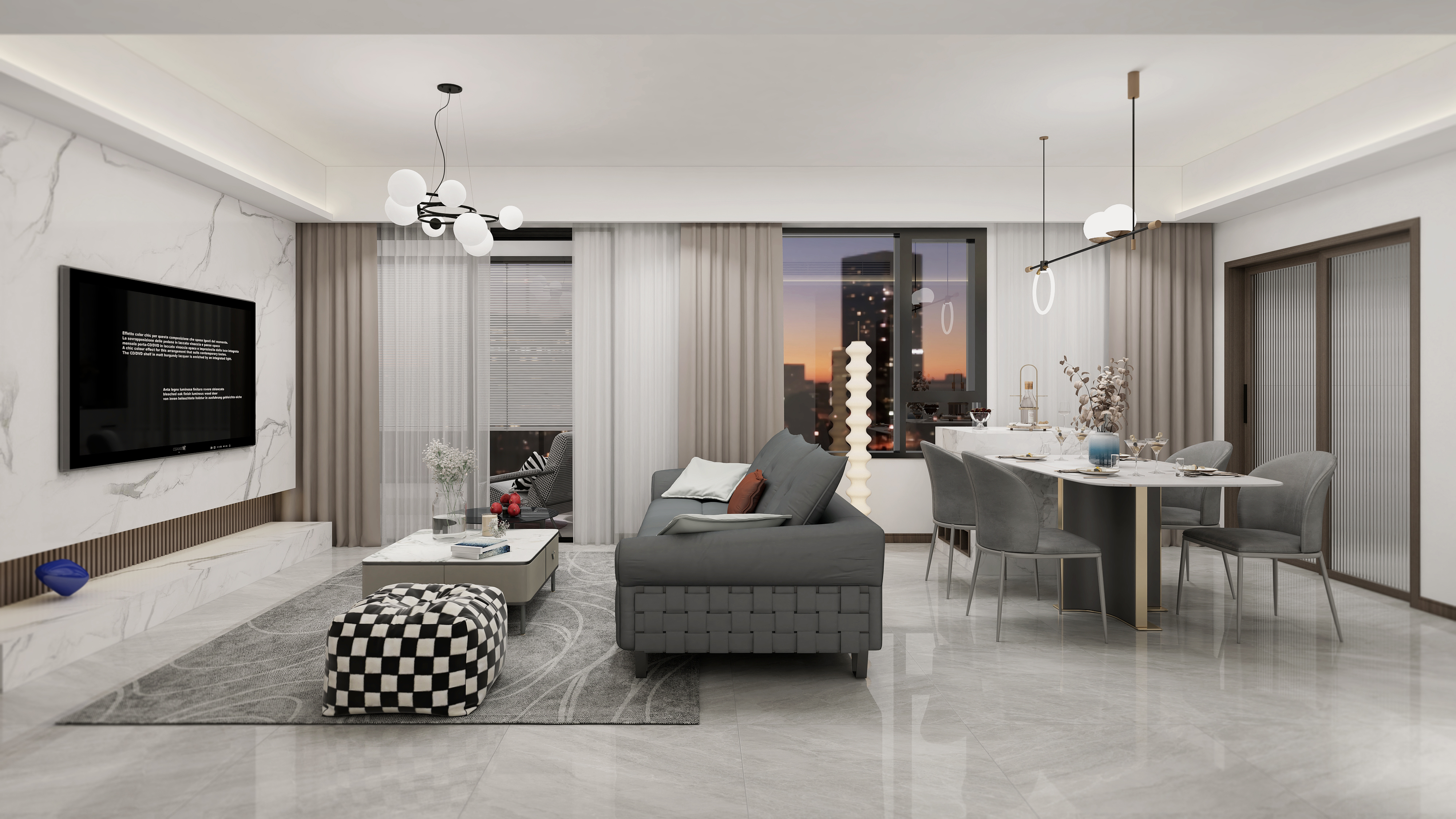 现代轻奢四居装修,整体简约大气,以门墙柜一体化设计打造高端品位的时尚家居空间!