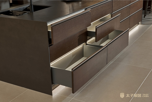 在上图中我们可以看到,橱柜除了能够给空间带来十足的品质感之外,橱柜本身作为家中的一件家具,自身的质量也是不可忽视的。