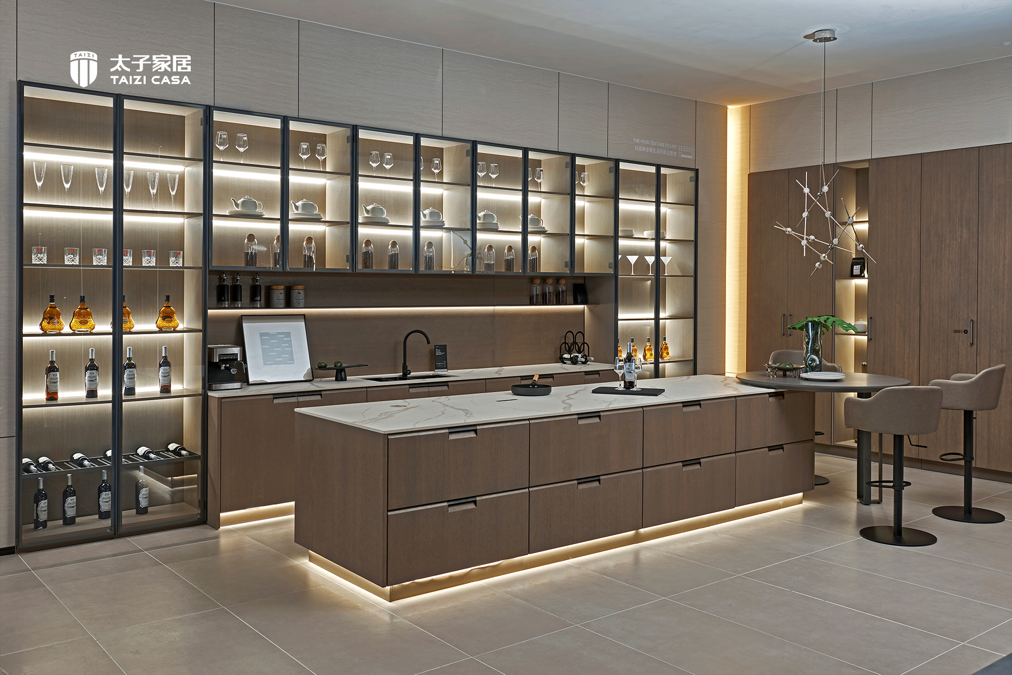 简约自然的餐厨空间 L型开放式厨房+独立岛台 符合现代人的社交需求 高颜值外观兼顾舒适功能 带给你简单治愈的下厨体验