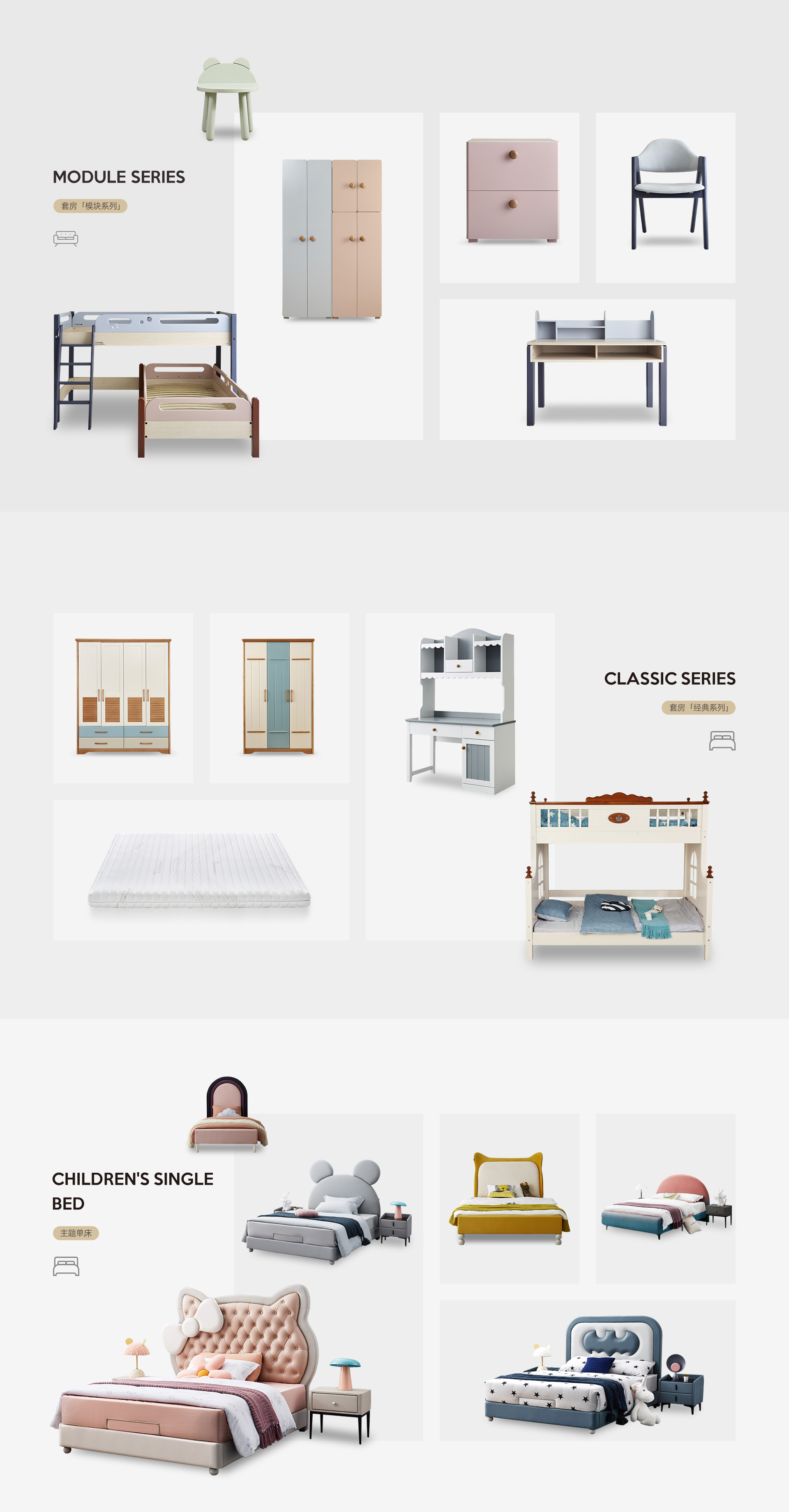 设计上更加关注少年的全龄段成长过程,集合人体工程学的要求和充满童真的色彩与造型,为孩子每个阶段的生活需要给予了周全提供